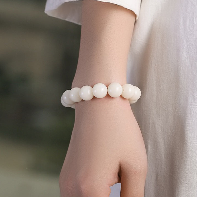 White Jade Round Bead Bodhi Bracelet